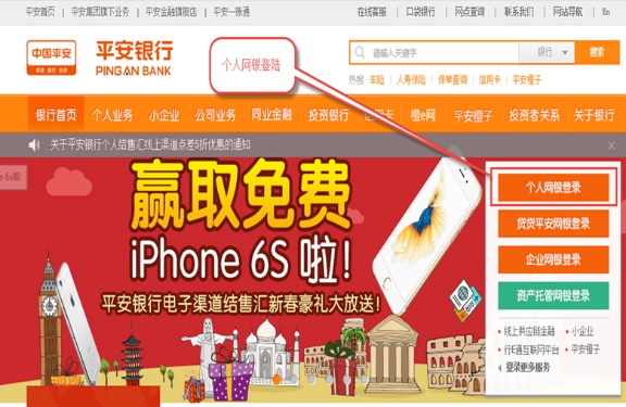 第一步:登录平安银行官网,选择银行(http://www.pingan.com)